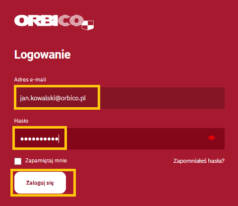 1. Wchodzimy na stronę www.sklepfirmowy.orbico.pl/logowanie/